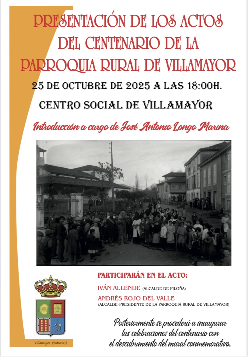 El sábado 25 de octubre se dará el pistoletazo de salida a los actos que conmemora el centenario de la Parroquia Rural de Villamayor. Posteriormente se celebrarán distintas conferencias. Os dejamos los programas aquí.