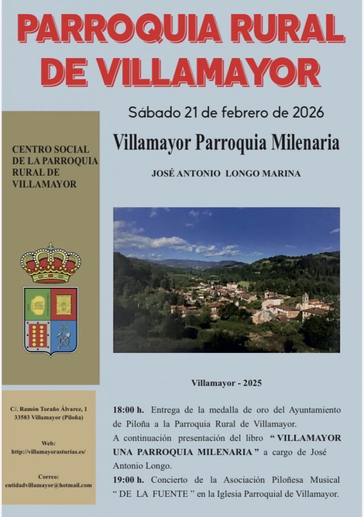 Con este motivo habrá diversas actividades, institucionales y lúdicas. Además presentaremos el libro Villamayor Parroquia Milenaria, de Jose Antonio Longo Marina.